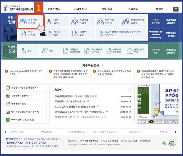'대법원 전자가족관계 등록시스템' 홈페이지 접속하기