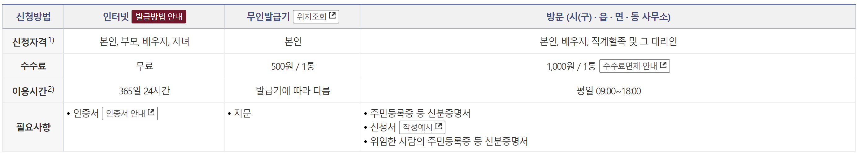 인터넷 발급, 핸드폰 발급, 무인민원발급기, 방문 발급 방법이 있는데요.